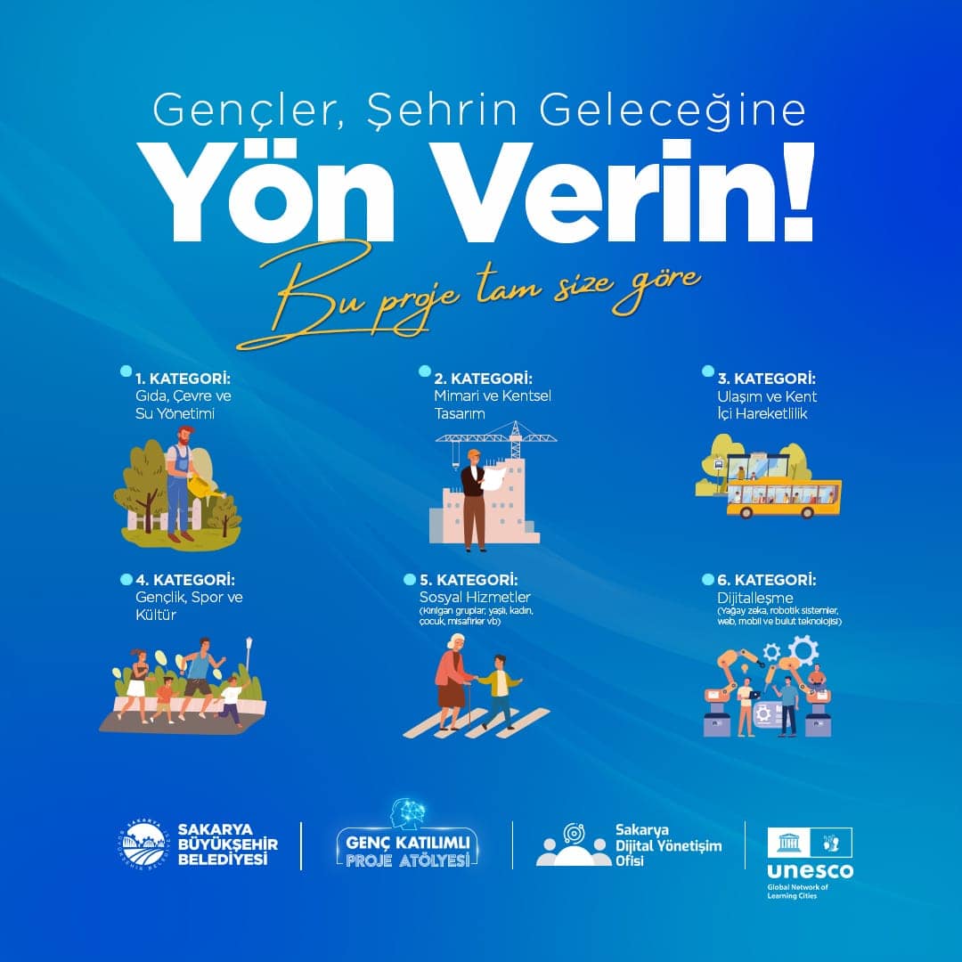 Yarışma; Gıda, Çevre ve Su Yönetimi, Mimari ve Kentsel Tasarım, Ulaşım ve Kent İçi Hareketlilik, Gençlik, Spor ve Kültür, Sosyal Hizmetler ve Dijitalleşme olmak üzere toplam altı farklı kategoride düzenleniyor. 15-30 yaş arasındaki gençler bireysel, grup, inisiyatif, platform veya kulüp olarak birden fazla projeyle başvuru yapabiliyor.