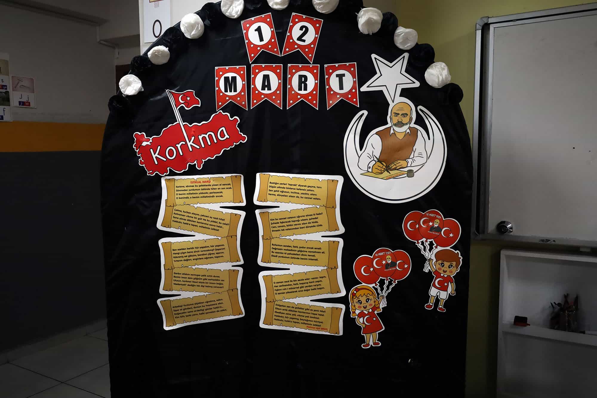 Etkinlikte, İstiklal Marşı’nı Güzel Okuma Yarışması‘nda birincilik elde eden öğrenci, marşı seslendirdi. Okul bahçesinde toplanan öğrenciler, büyük bir coşkuyla İstiklal Marşı‘na eşlik etti. Açılan Türk bayrağı eşliğinde gerçekleştirilen törenin ardından, milli marşımızın yazarı Mehmet Akif Ersoy minnet ve saygı ile anıldı.