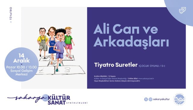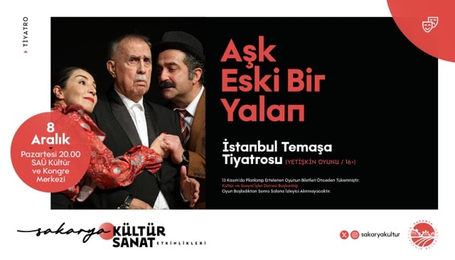 Sakarya Büyükşehir Belediyesi, Aralık ayı kültür ve sanat etkinlik programını duyurdu. Yılın son takviminde tiyatrodan konsere, sergiden söyleşiye, çocuk oyunlarından film gösterimlerine kadar birçok farklı etkinlik Sakaryalılarla buluşacak. Kış mevsiminde şehirde kültür ve sanat dolu günler yaşanacak.